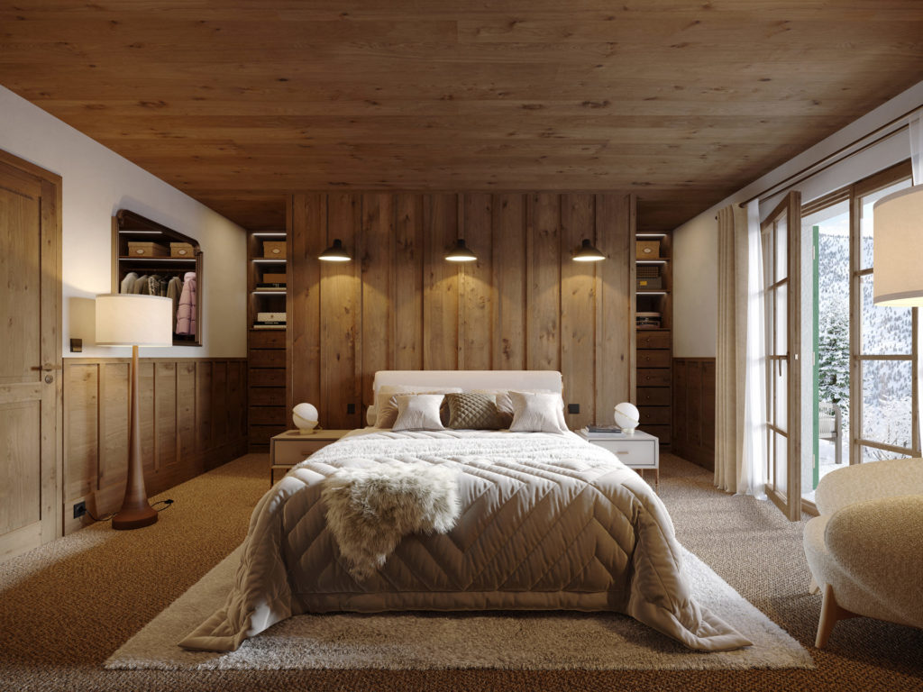 Perspective 3D d’une chambre d’un chalet à St Gervais | Conception : Beauvoir Immobilier,