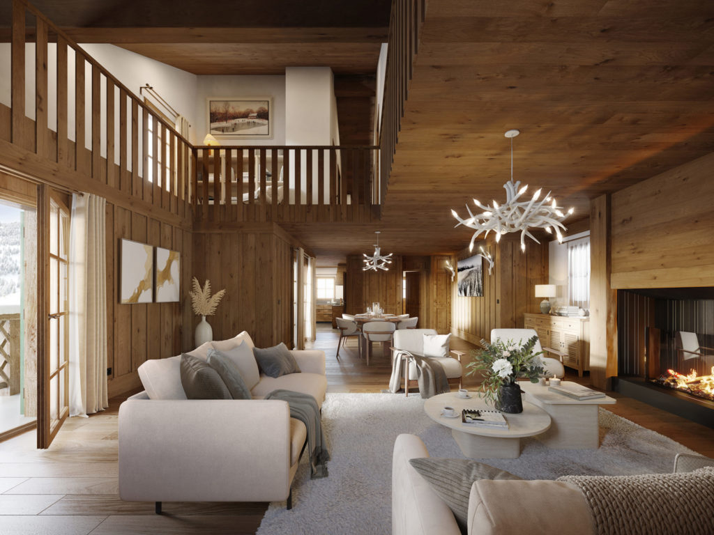 Perspective 3D salon des Chalets Bettex à St Gervais | Conception : Beauvoir Immobilier,