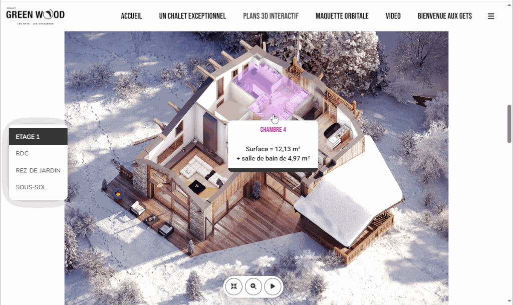 Voici les perspectives 3D sous la neige, plans 3D interactifs, film promotionnel, et la vitrine web commerciale que nous avons réalisé sur les chalets de Biotope Immobilier et Aspen Immobilier en 2023.